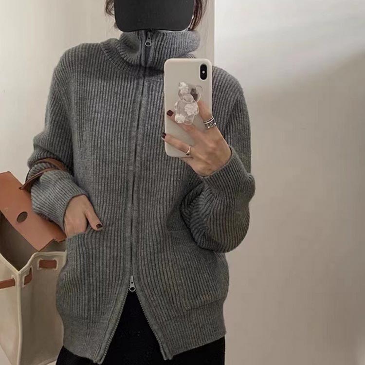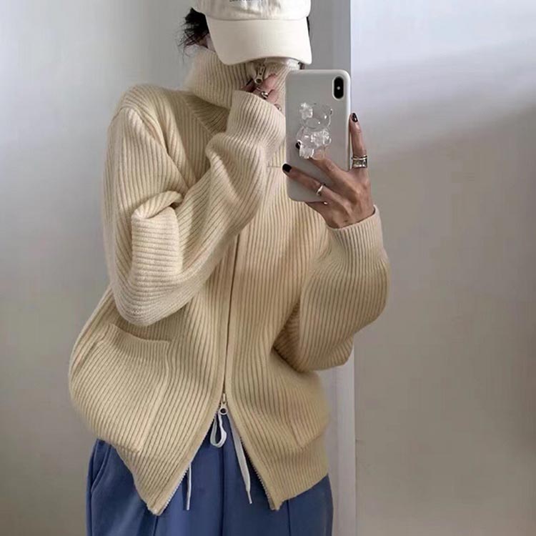 アウター ハイネック 長袖 前開き ゆ