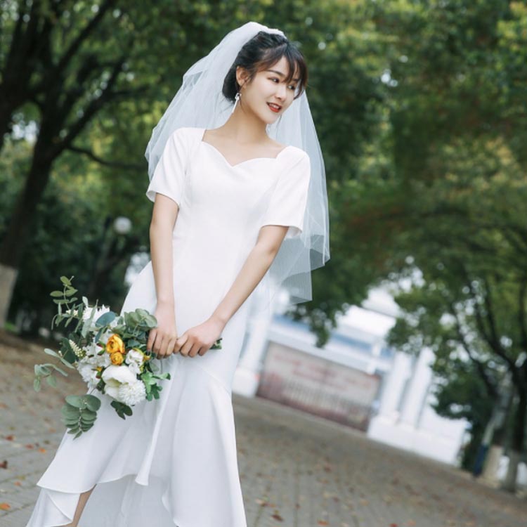 袖あり ウェディングドレス ワンピース