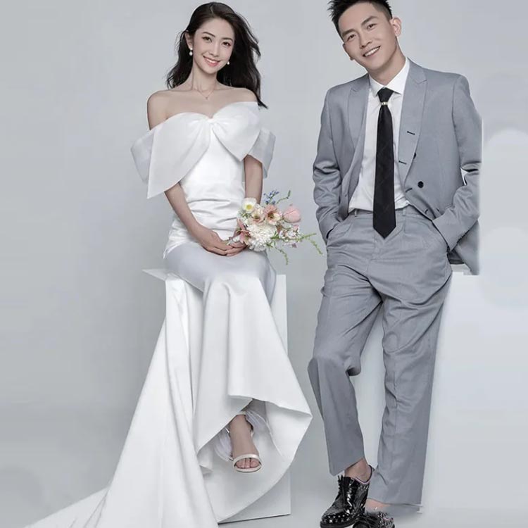 結婚式 長袖 トレーン付き スレンダー