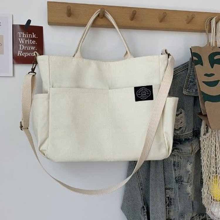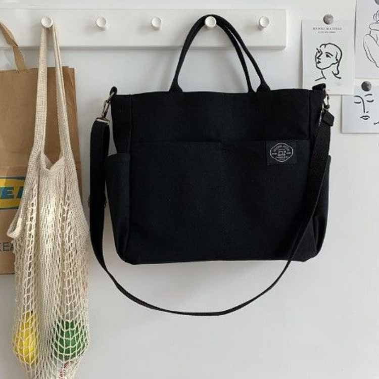 【 丈夫なキャンバス素材 】 お出かけの際に、飲み物をこぼしてバッグが汚れたりすることありますよね。大切にしているバッグが汚れてしまうのはかなりショックだと思います。 そんなバッグが汚れてしまった時でも洗えるよう、厚手のキャンバス素材を採用しました。 また、丈夫なキャンバス素材なので、毎日使ってもちょっとやそっとではくたびれること無くお使い頂くことができます。 お気に入りのトートバッグといつもお出かけすることができます。