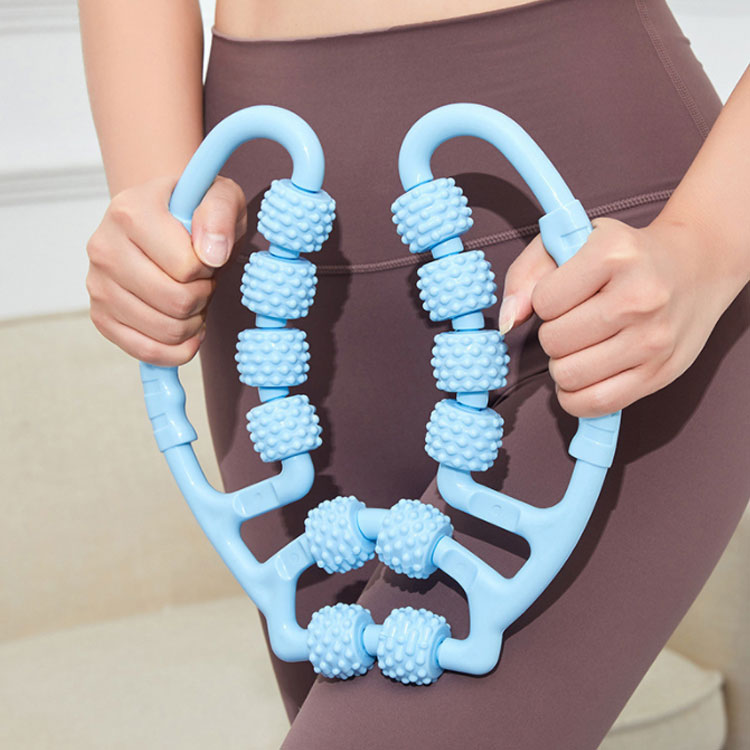 マッサージローラー 指圧ローラー 自分磨き 脚痩せ 脚やせ 手持ち 挟む式 太もも 美容 ふくらはぎ セルライト 筋膜リリース おうち美容 コンパクト 腰 むくみ