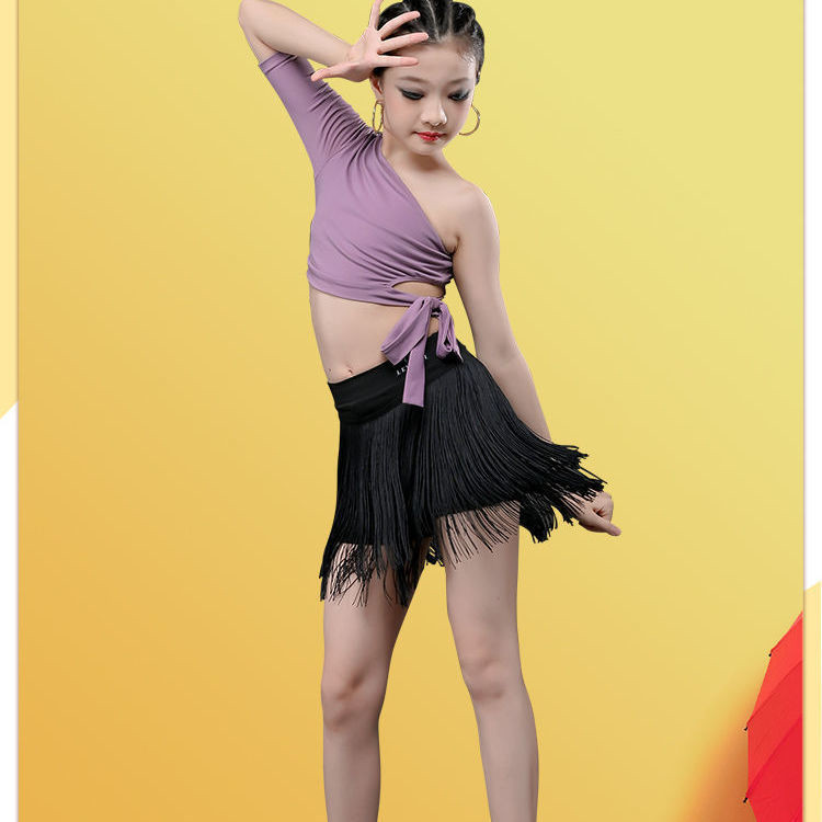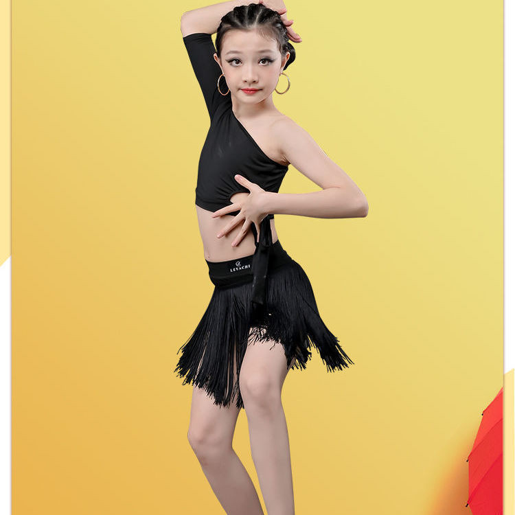 ダンスウェア ラテンダンス latin 二点セット キッズ ラテン レオタード+スカート 演出 女の子 高級感 ステージ 発表会 舞台 競技 練習用 ブラック グレー 120~170cm wudao-