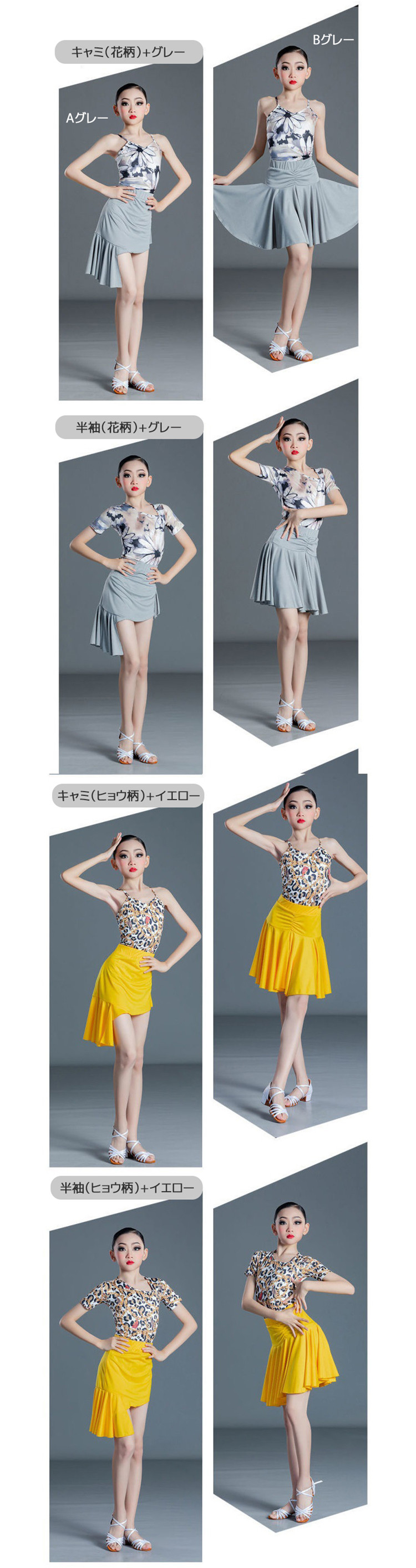 vertical-key: キャミ(ヒョウ柄)+Aイエロー キャミ(ヒョウ柄)+Bイエロー 半袖(ヒョウ柄)+Aイエロー 半袖(ヒョウ柄)+Bイエロー キャミ(花柄)+Aグレー キャミ(花柄)+Bグレー 半袖(花柄)+Aグレー 半袖(花柄)+Bグレー