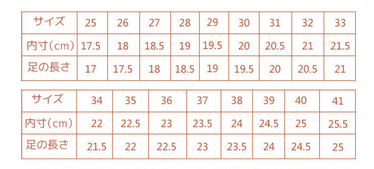 vertical-key: 34/22cm 35/22.5cm 36/23cm 37/23.5cm 38/24cm 39/24.5cm 40/25cm 41/25.5cm