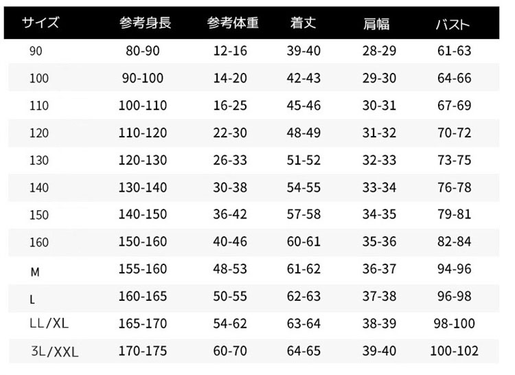 vertical-key: 90 100 110 120 130 140 150 160 M(4180円) L(4180円) LL/XL(4180円) 3L/2XL(4180円)
