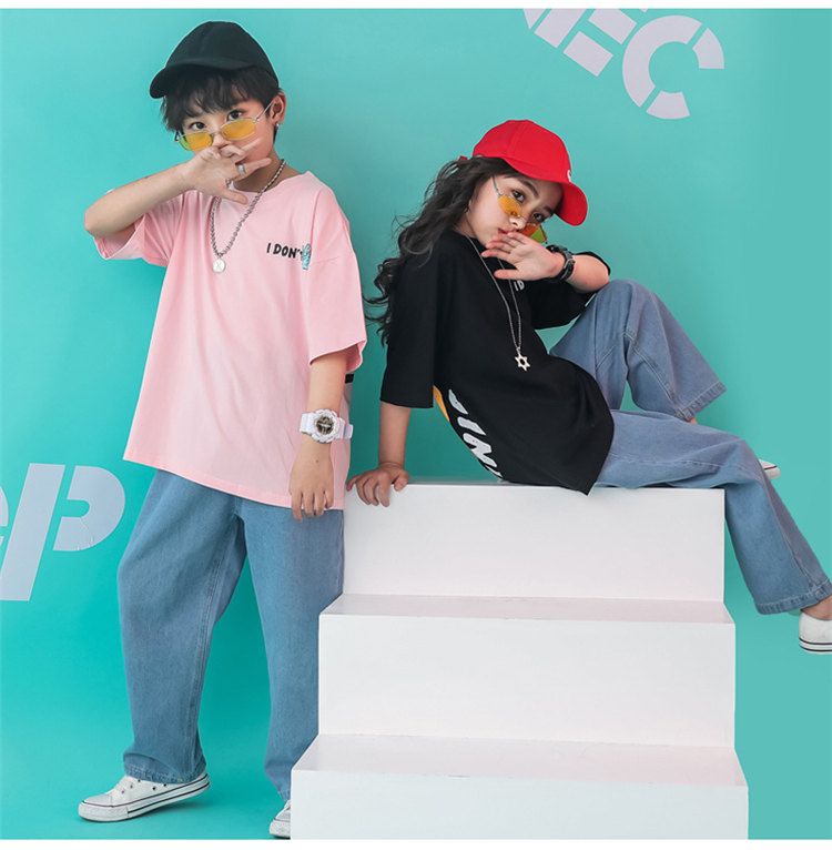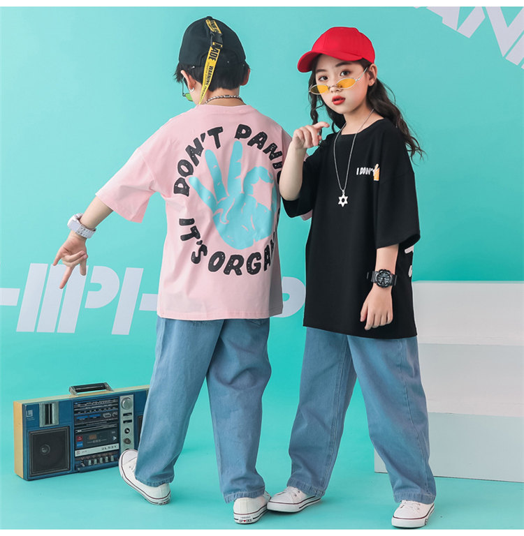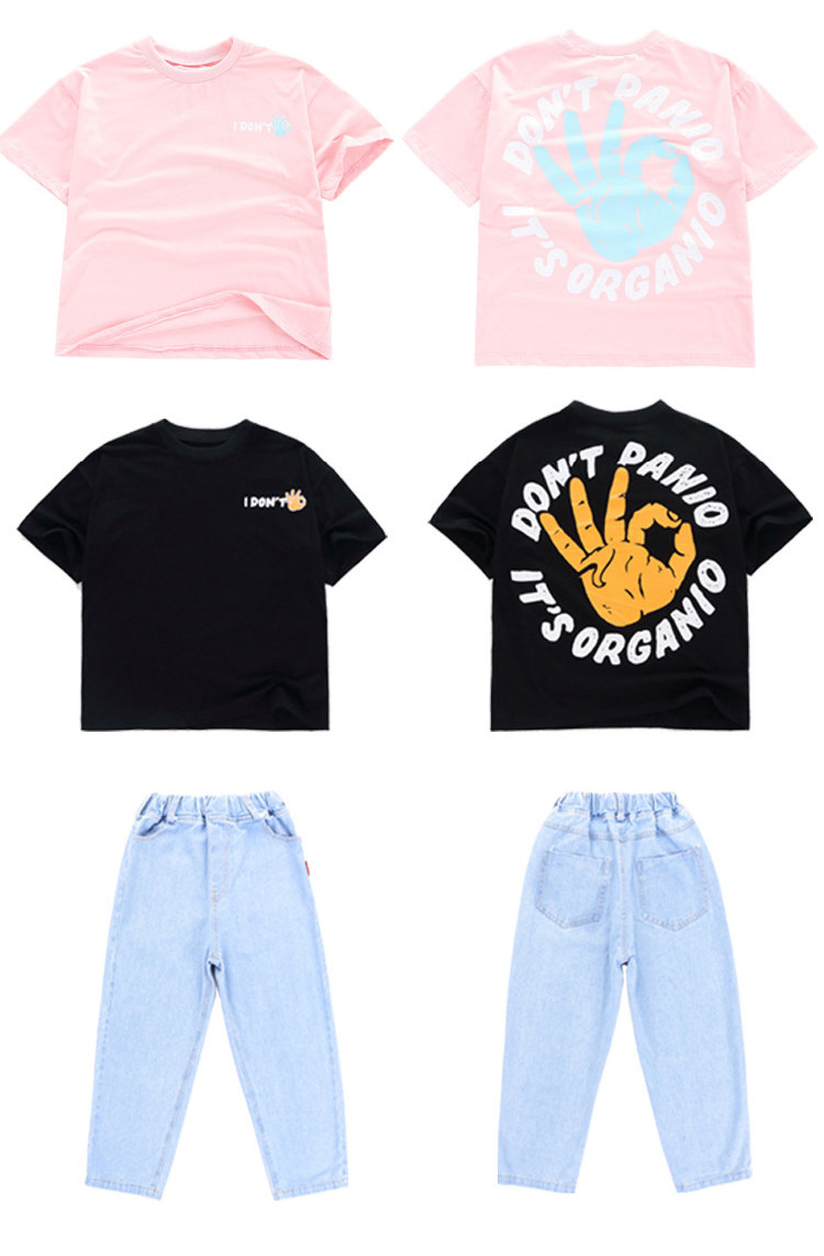 horizontal-key: ピンクシャツ ブラックシャツ デニムパンツ