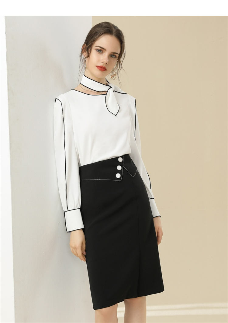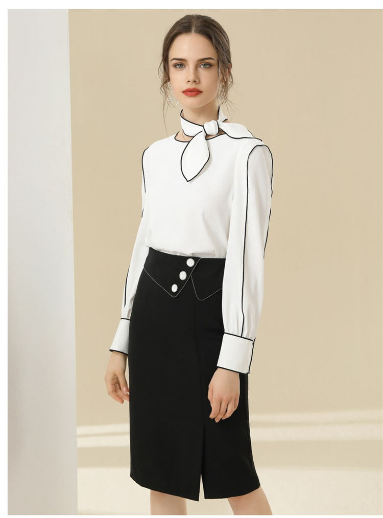 シアースリーブ ドッキングシャツ ボウタイシャツブラウス