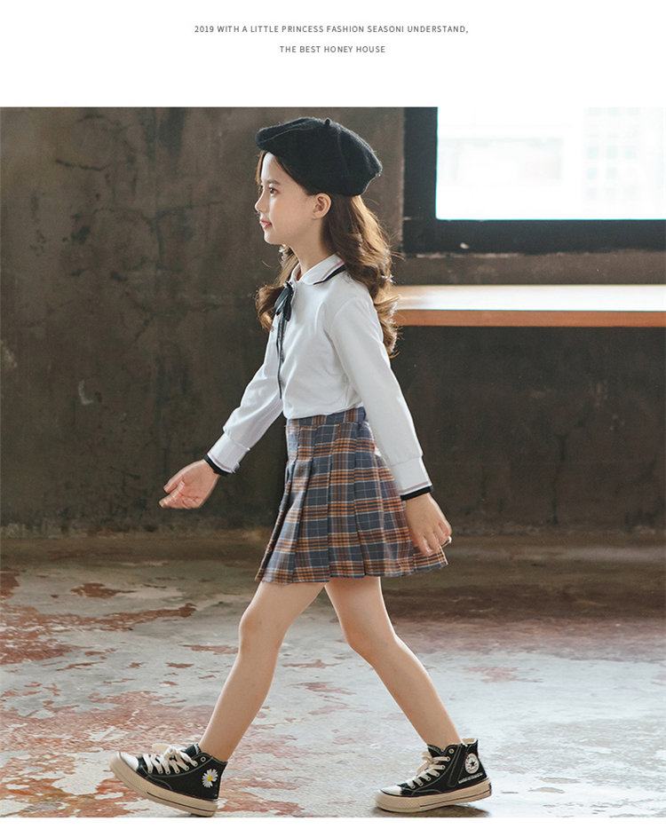 二点セット キッズ 子供服 女の子 シャツ+デニムパンツ ファッション きれいめ 結婚式 カジュアル おしゃれ 女児 格子 可愛い お出かけ パーティー 学生 130-165 チェック TZ-1009