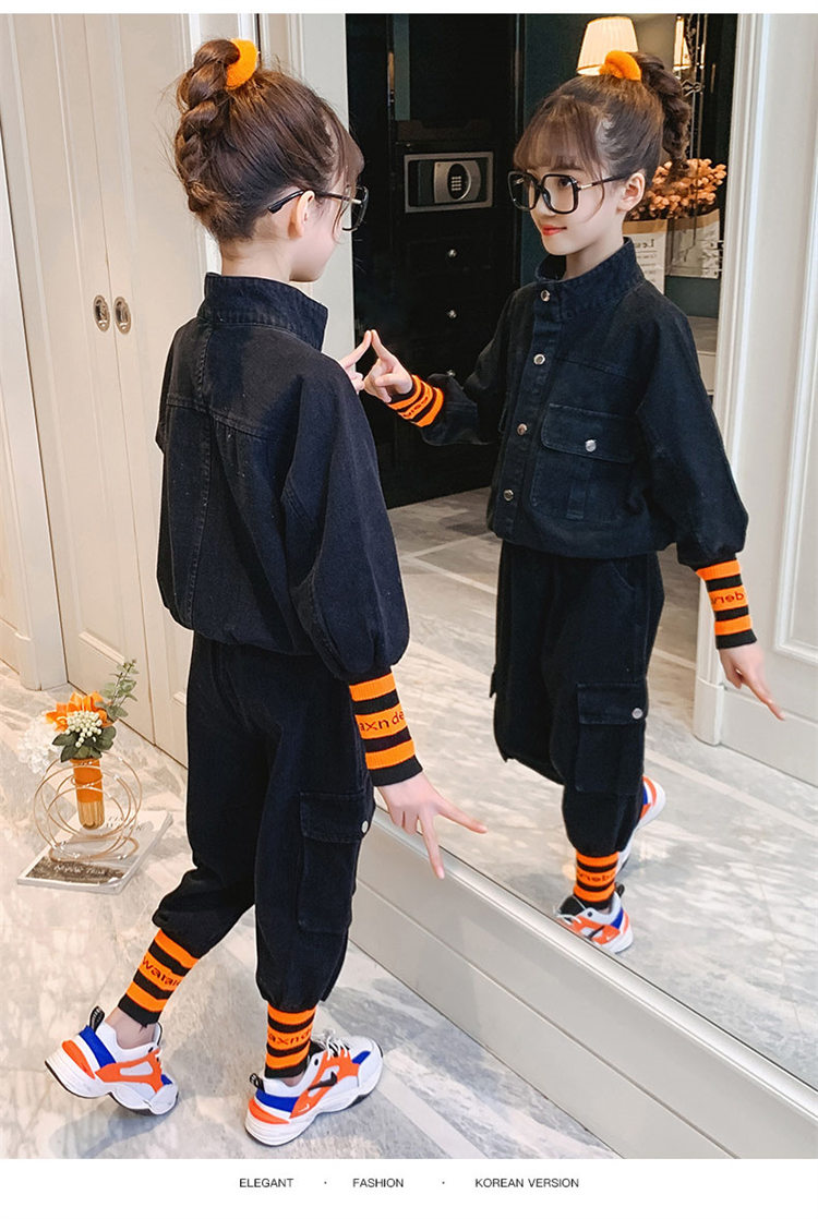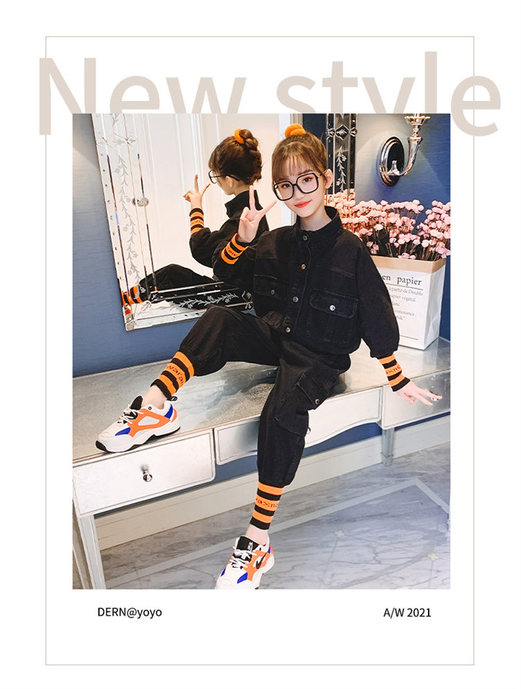 二点セット キッズ 子供服 女の子 シャツ+デニムパンツ ファッション きれいめ 結婚式 カジュアル おしゃれ 女児 格子 可愛い お出かけ パーティー 学生 130-165 チェック TZ-1009