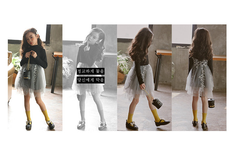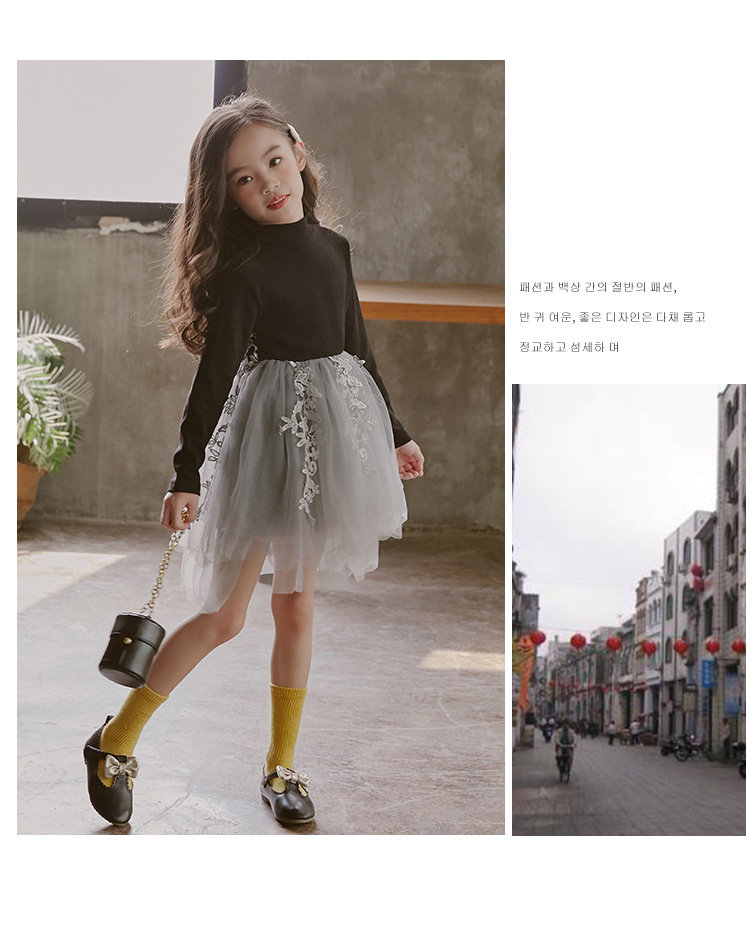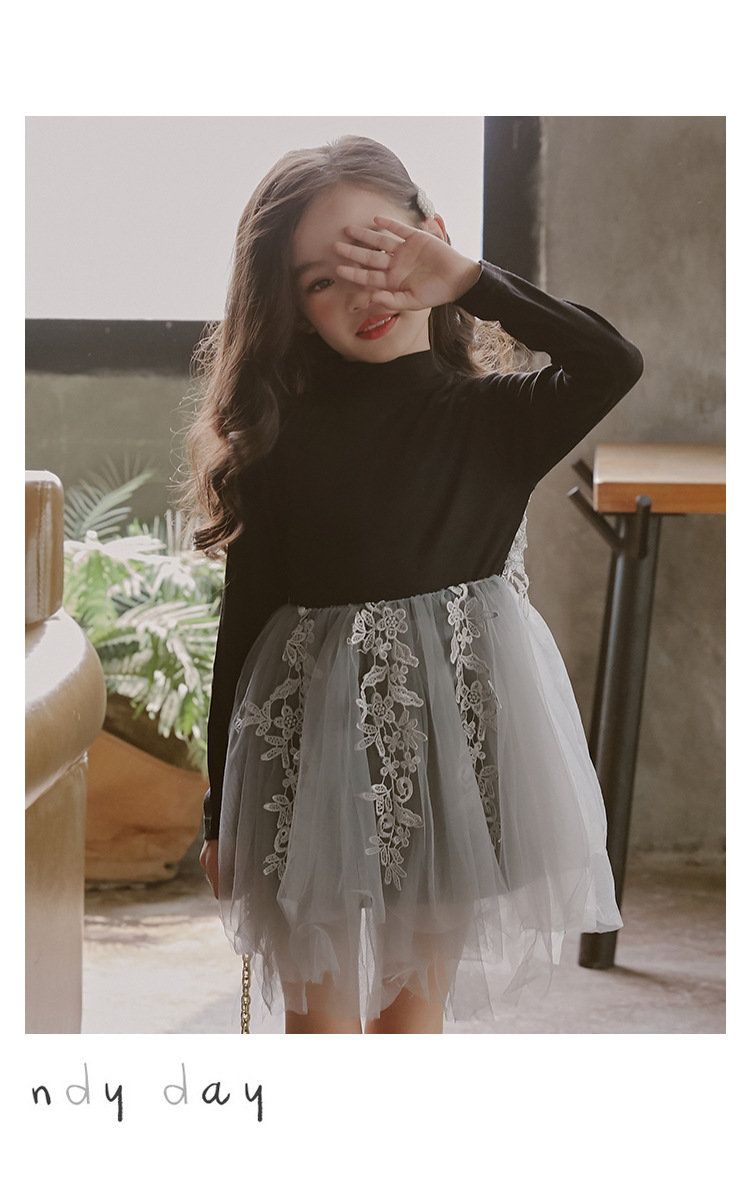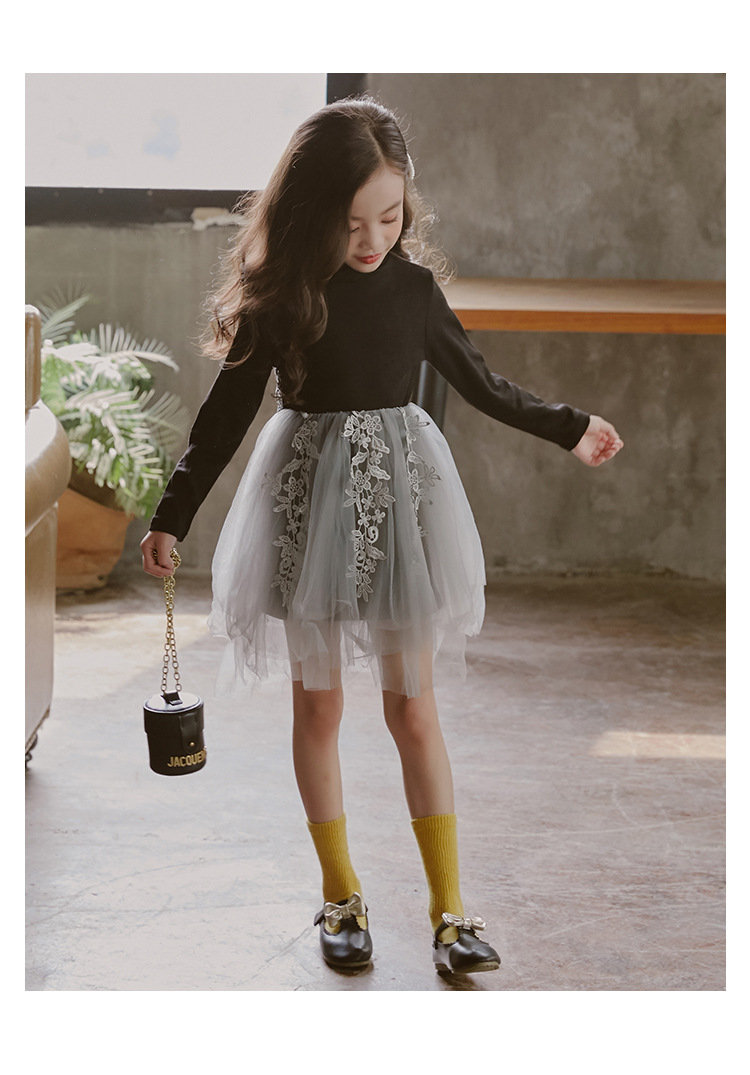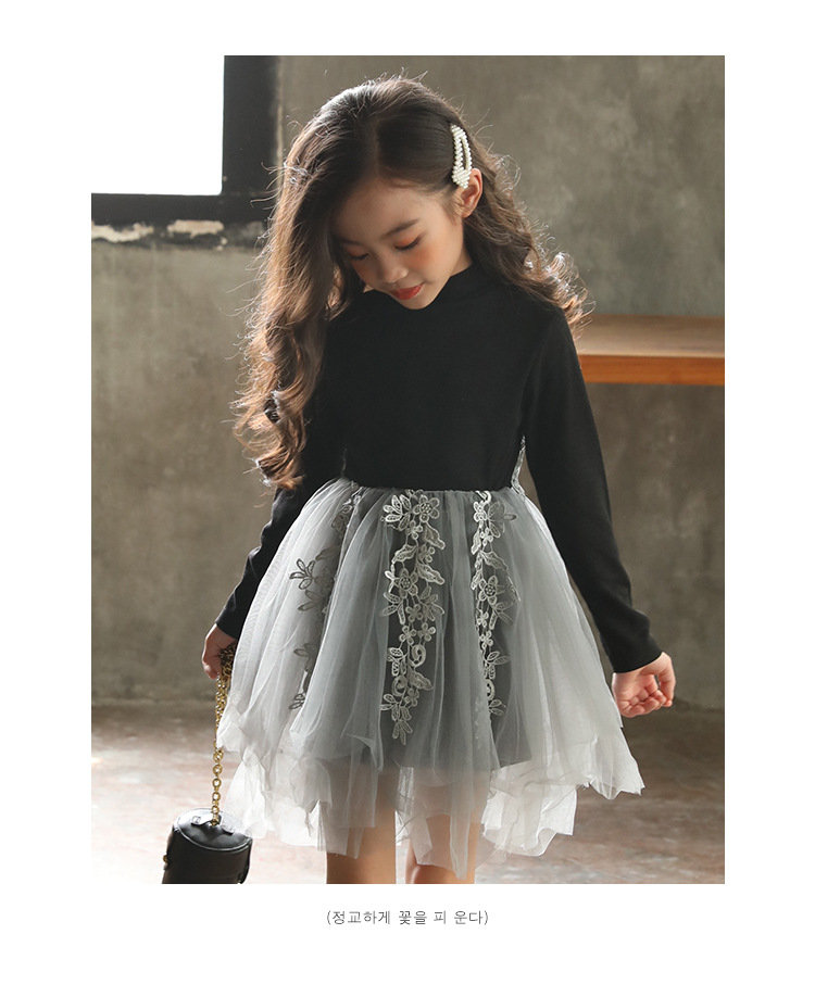 ワンピース ブラック 長袖 春秋 刺繍