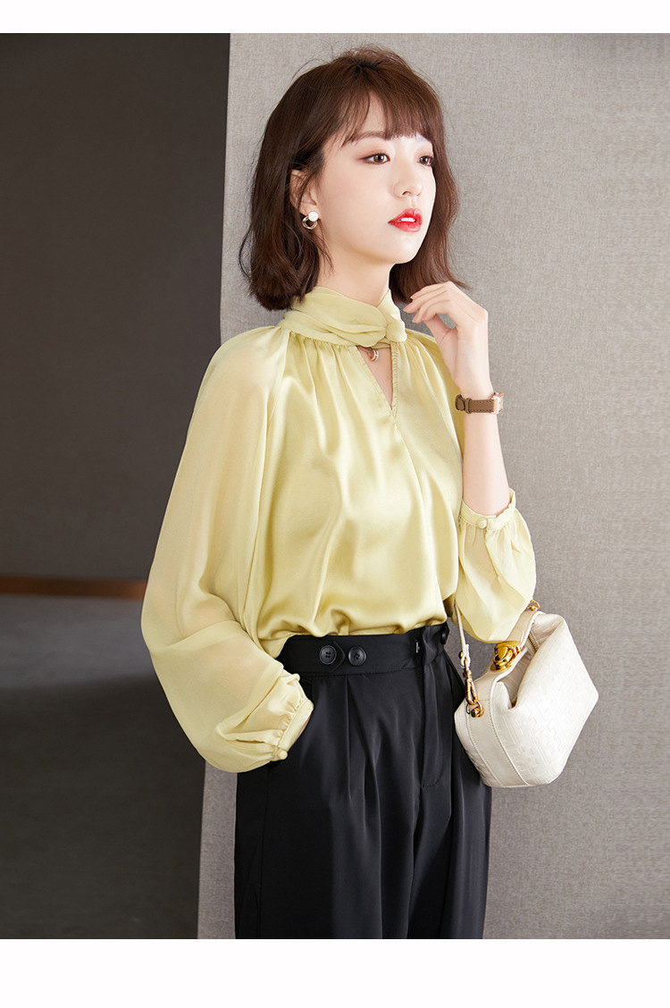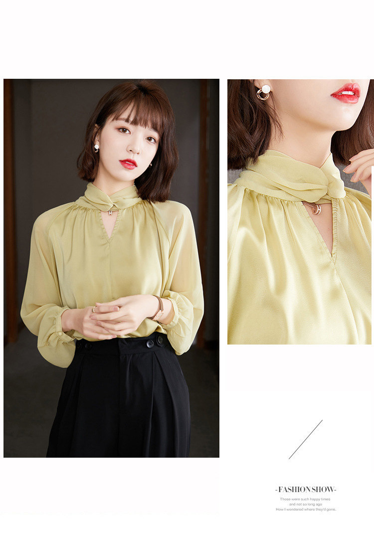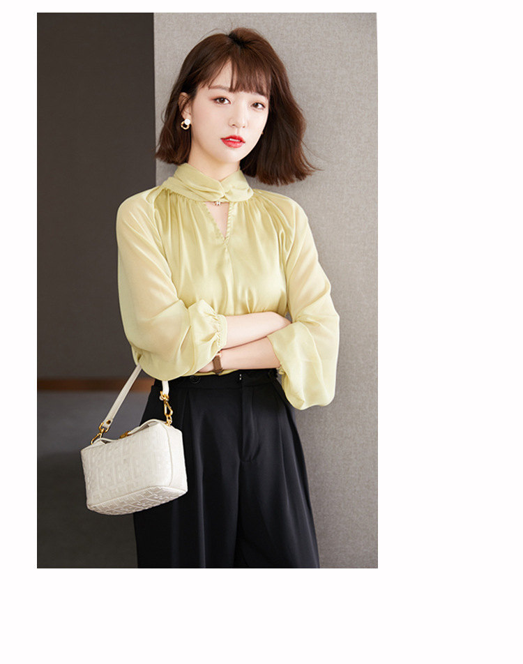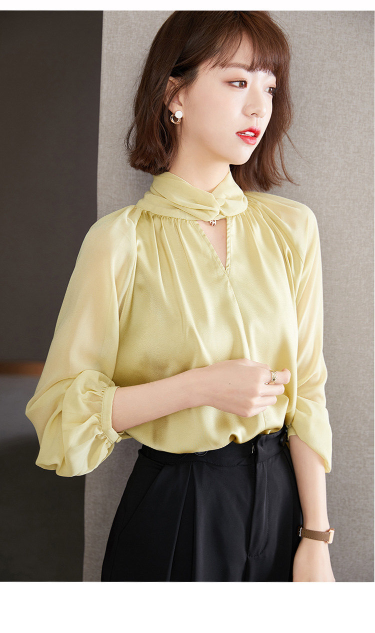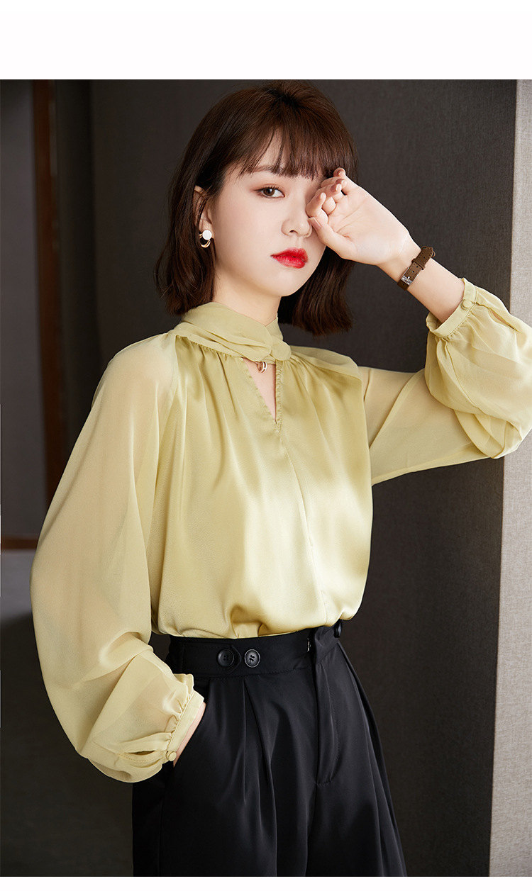 シアースリーブ ドッキングシャツ ボウタイシャツブラウス