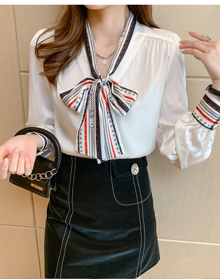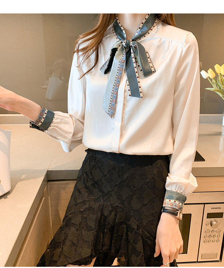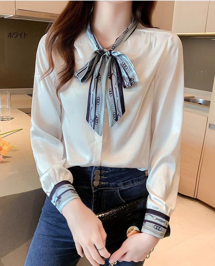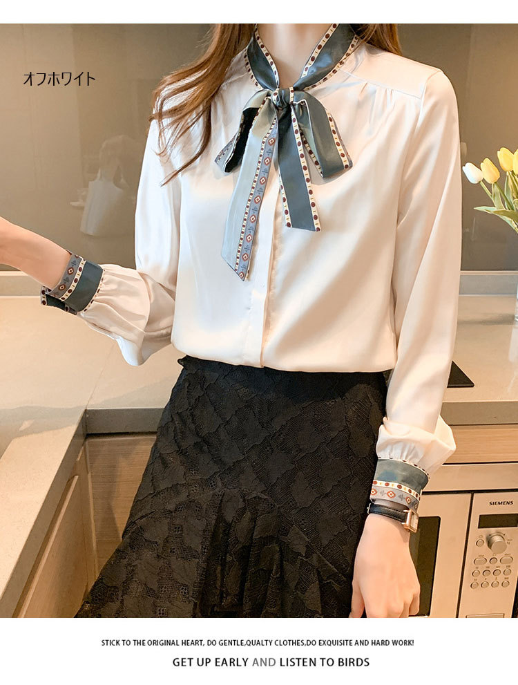 シアースリーブ ドッキングシャツ ボウタイシャツブラウス
