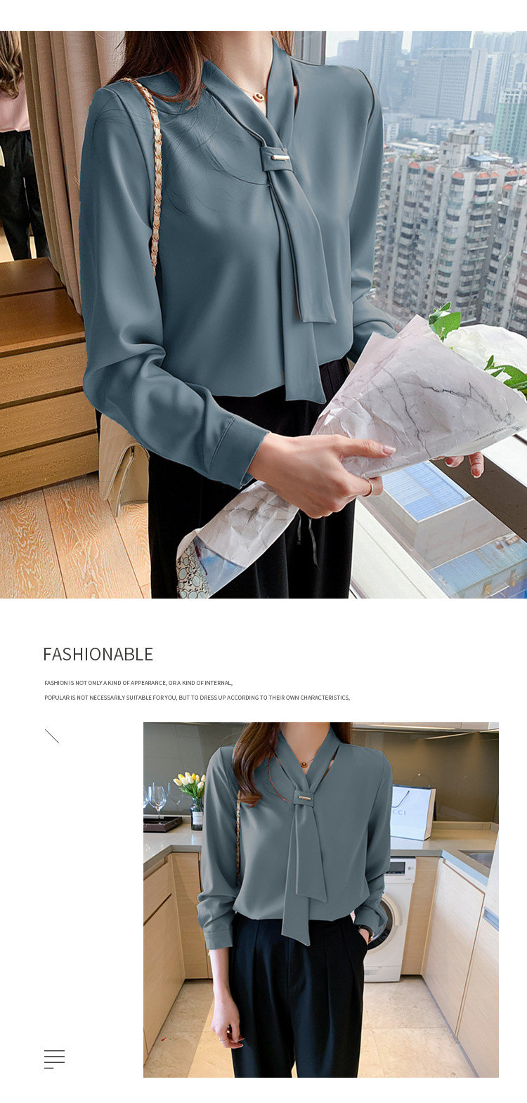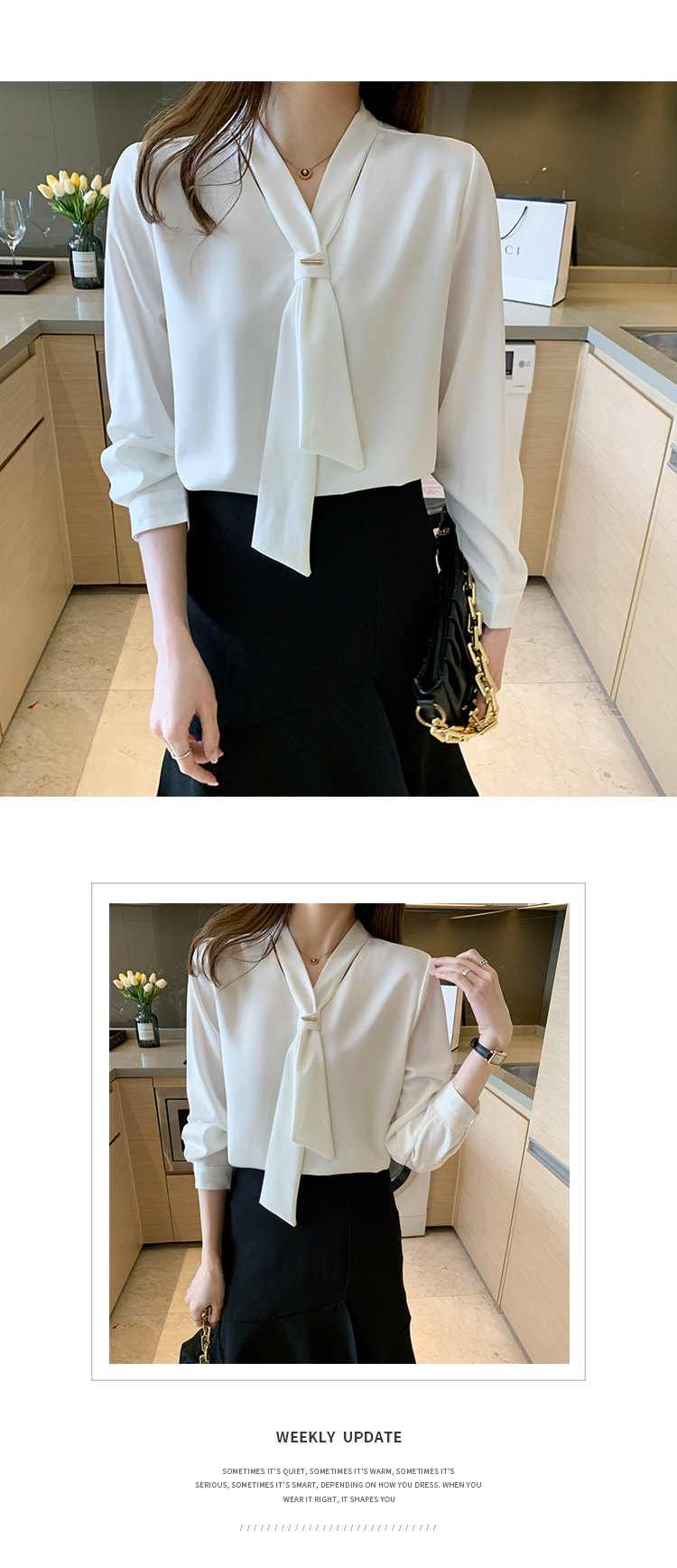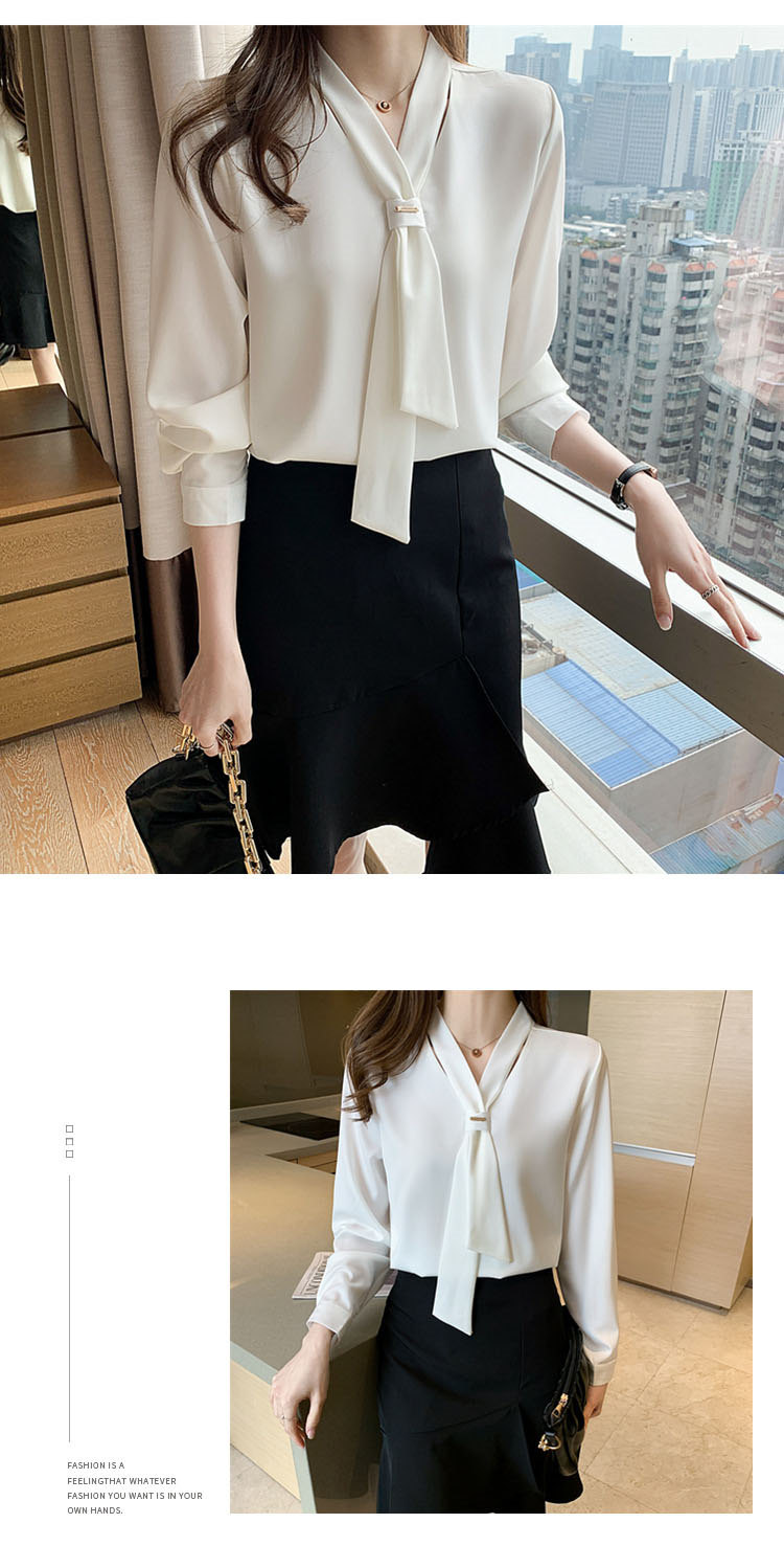 シアースリーブ ドッキングシャツ ボウタイシャツブラウス