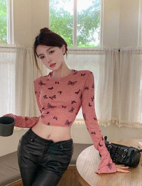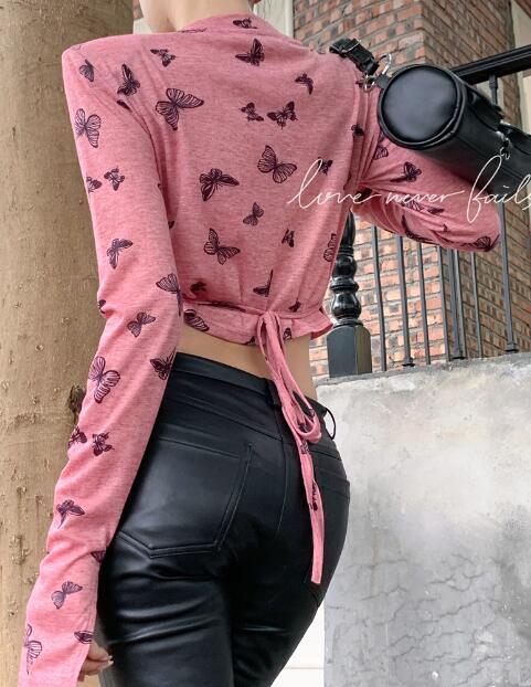 ちょうちょリボンレースアップ透け感長袖