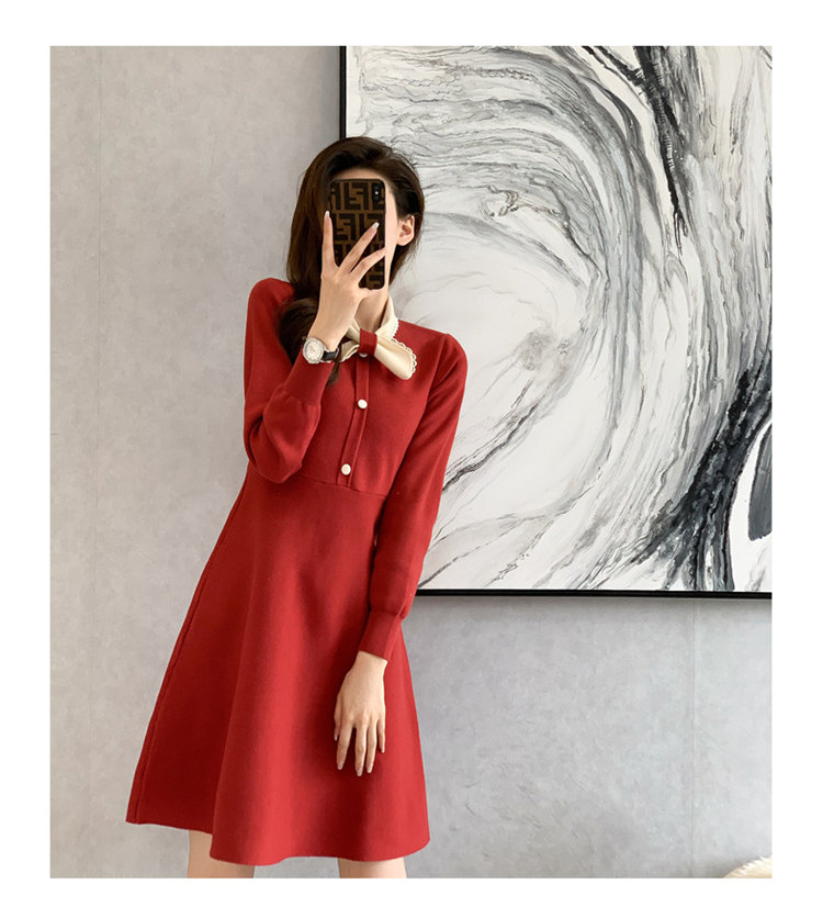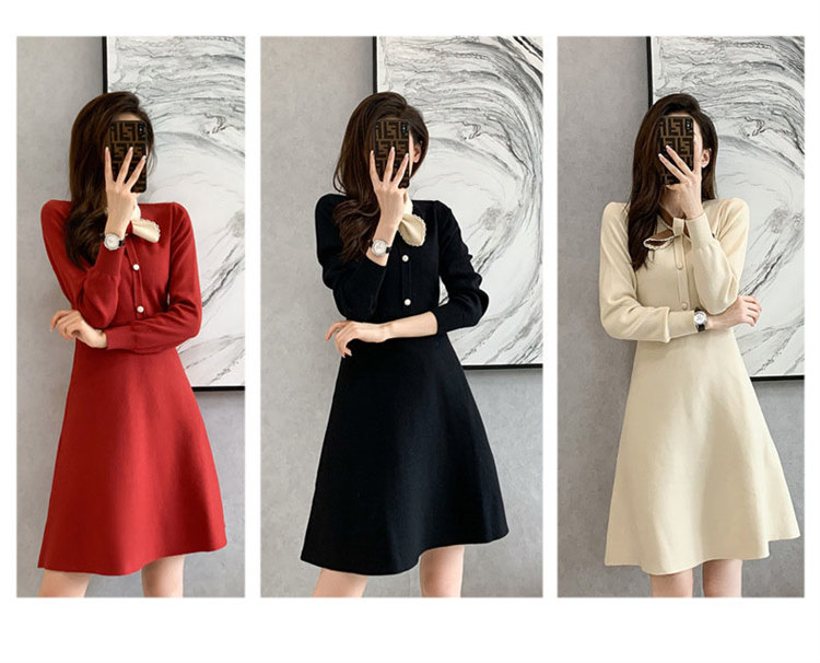 ワンピース 長袖 膝丈 春秋 ニットき