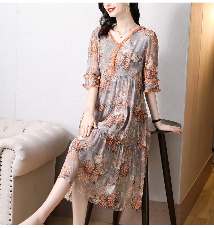 ワンピース 五分袖 春秋 花柄 きれい