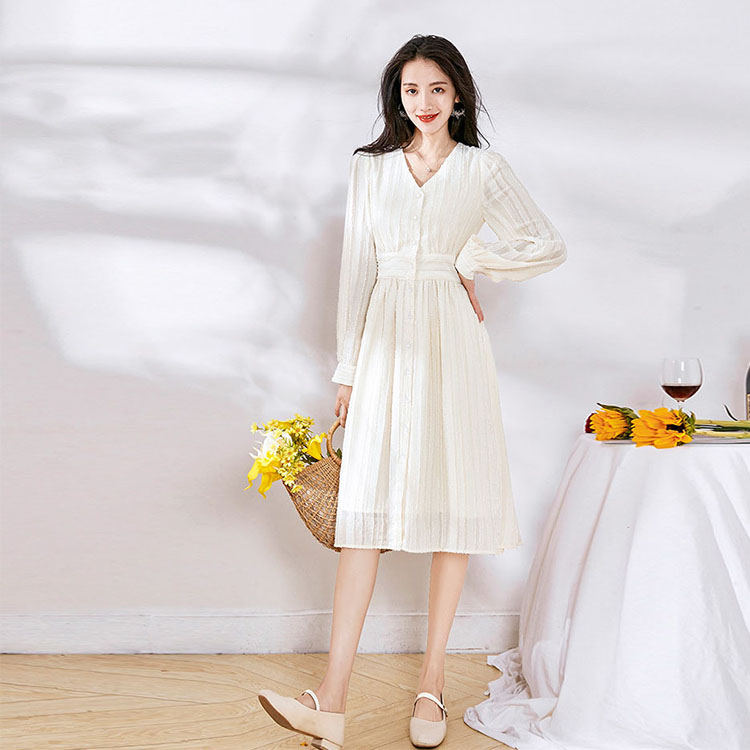 ワンピース 春 秋 長袖 Vネック レ