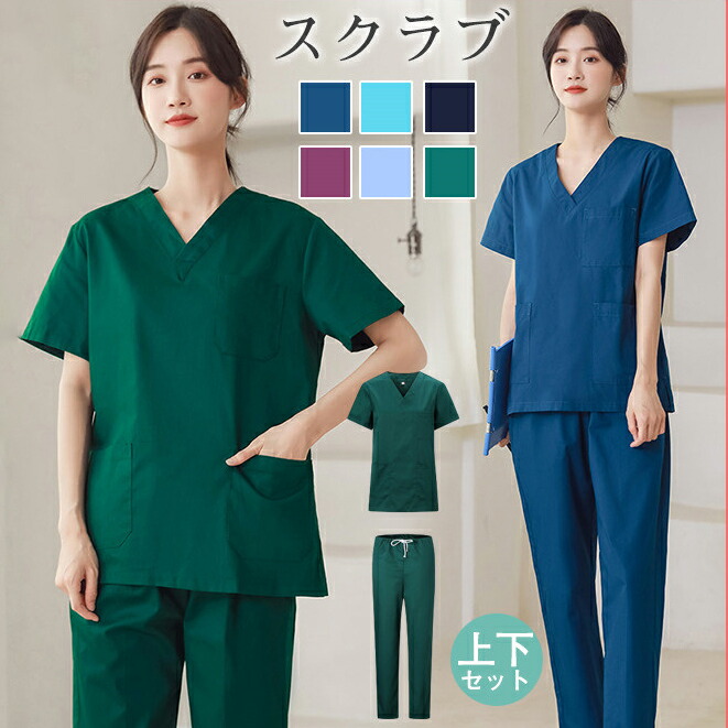 スクラブ セットアップ 上下セット 白衣 レディース 半袖 ドクター 歯医者 ユニフォーム メンズ 美容 サロン ナース服 医務衣 介護施設