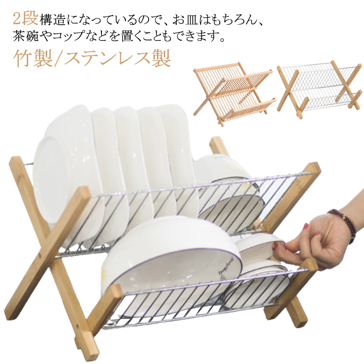 食器棚 お皿立て 水切りラック 2段 水切りかご 水切り 竹製 ステンレス製 便利 食器ホルダー 水切り