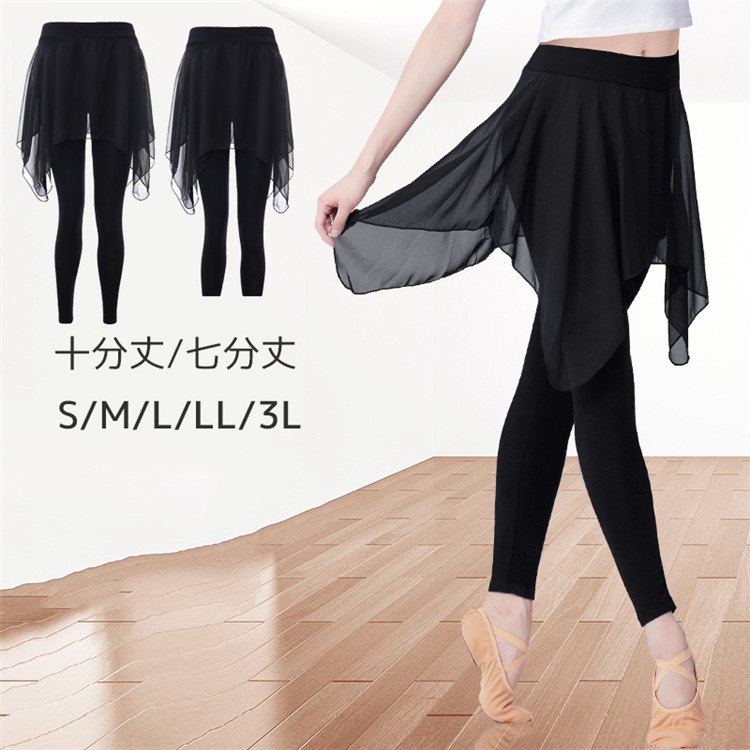 レギンス レディース 十分丈 七分丈 バレエ キュロット レッスン着 一体型 スカート付き タイツ 脚長 美脚 ダンスパンツ ヨガウエア ボトムス ブラック ヨガウェア S~3L wudao-238