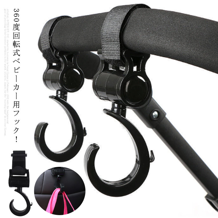 ベビーカーフック 2個セット 360度回転 ベビーカー 荷物フック 耐荷重約20kg バギーフック マジックテープ マルチフック