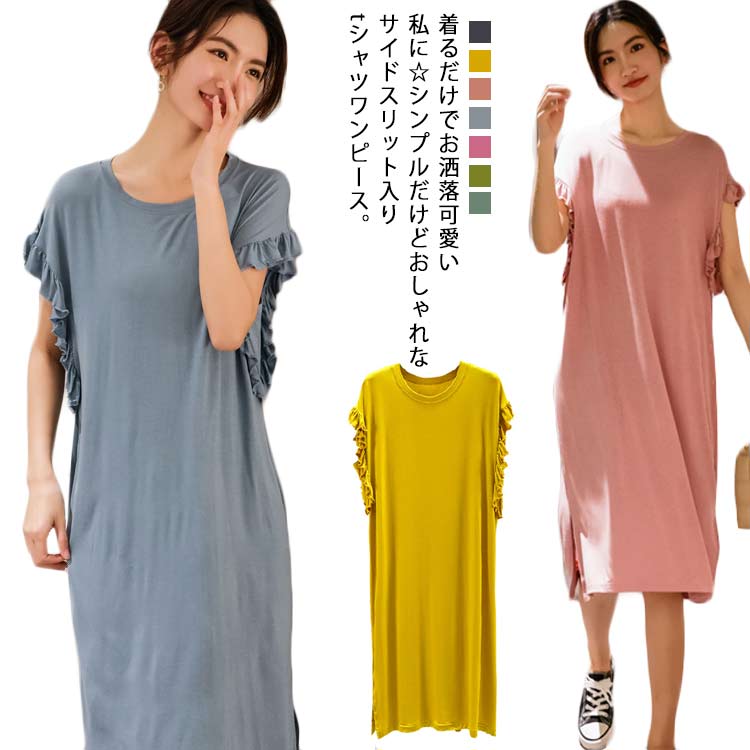 パジャマ ワンピース ミモレ丈 半袖 レディース ゆったり ルームウェア 部屋着 体型カバー おしゃれ