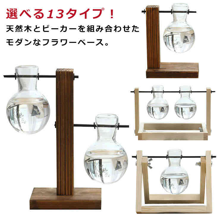 一輪挿し フラワーベース ビーカー 花瓶 北欧 卓上花瓶 ガラス花瓶 フラワーベース 木製 フレーム 水栽培 球根 ヒヤシンス サボテン ハイドロカルチャ