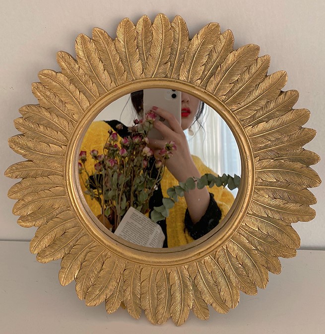 フラワーゴールドミラー鏡花型ひまわり丸サークル32×32韓国雑貨インテリアアンティーク北欧大きいおしゃれかわいい壁掛け卓上レトロスタンドミラーウォールミラー大きめ