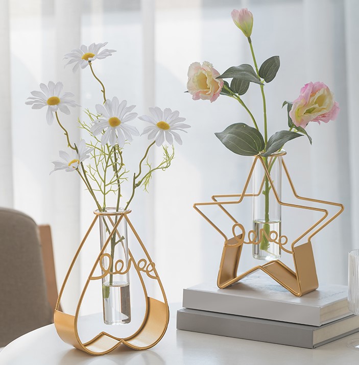 花瓶フレーム4デザインゴールド透明ハート星スター三角長方形文字ロゴLOVEおしゃれ韓国雑貨インテリアアンティーク北欧クリア玄関小さい小さめ大きい大きめ一輪挿し細い壺試験管ガラス可愛い玄関