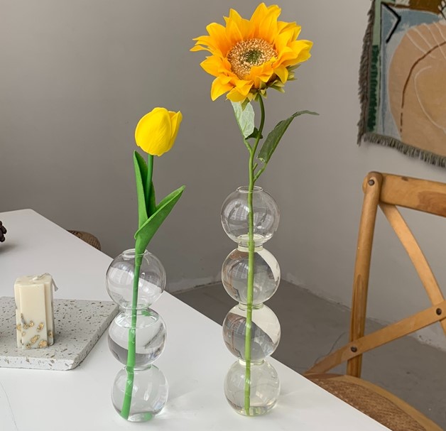 バブル花瓶一輪挿し白透明クリアガラスおしゃれかわいいカフェインテリア玄関用北欧小さい雑貨インテリア 寝具 収納 インテリア小物 置物 花瓶