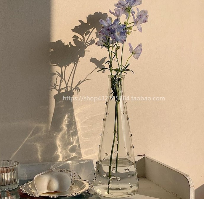 ドット花瓶ガラスおしゃれ韓国雑貨インテリアアンティーク透明北欧クリア玄関小さい小さめ大きい大きめ一輪挿し可愛い水玉細い玄関シンプル