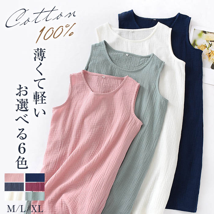 綿100% 部屋着 ネグリジェ ガーゼパジャマ レディース ワンピース ルームウェア ノースリーブワンピース ルームワンピース ノースリーブ 膝丈 コットン 無地 カジュアル ナチュラル
