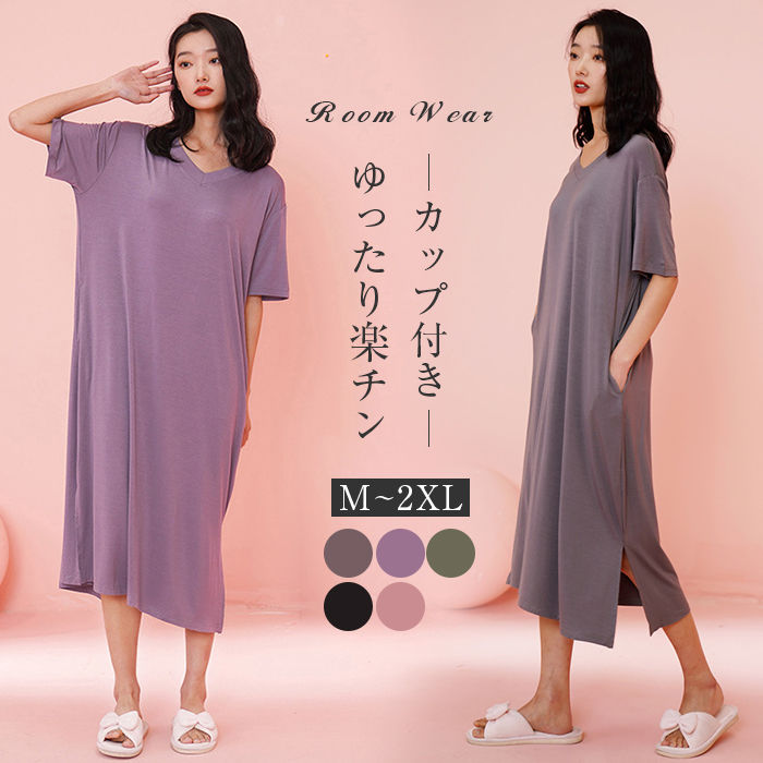 カップ付き ワンピース ロングワンピ ルームウェア 日常ウェア ロングTシャツワンピース モダール パジャマ シンプル ワンピース 体型カバー ホームウェア プレゼント