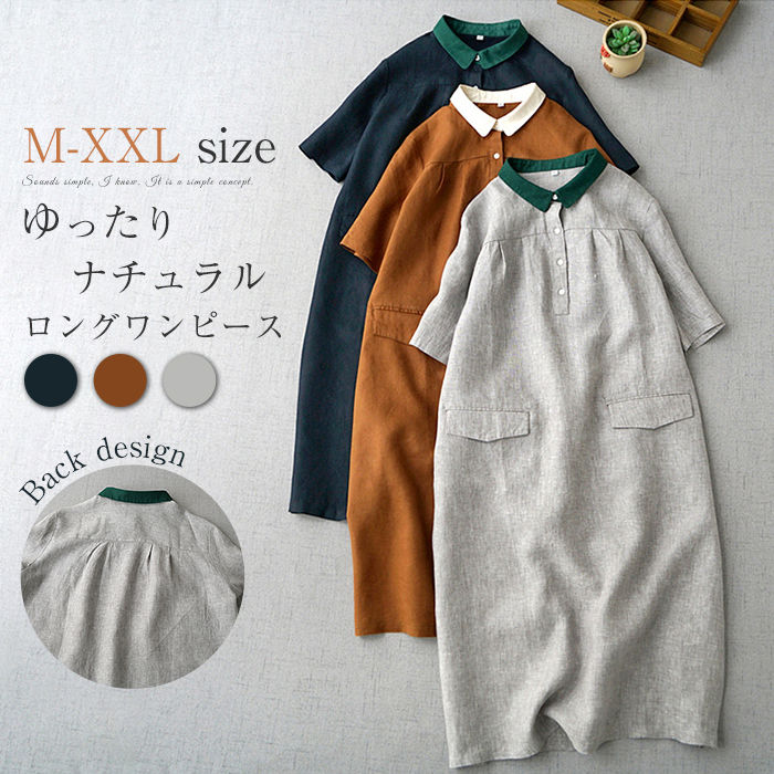ゆるシルエット シンプル 綿麻 ワンピース レディース ロング丈 ワンピース シャツ ワンピース ガーゼワンピース レディース ワンピ ガーゼ きれいめ ヒット