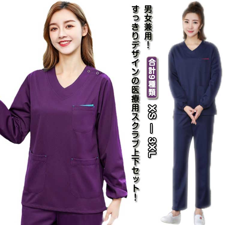 スクラブ 上下セット 男女兼用 白衣 医療用 看護師 ドクター ナース クリニック 病院医薬品 コンタクト 介護 白衣 医療用衣料 スクラブ 上下セット