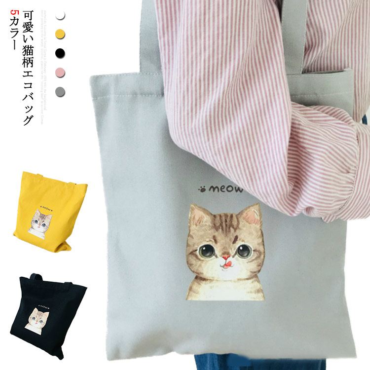 大容量 猫柄ショルダーバッグ レディース 肩掛けバッグ キャンバス お買い物バッグ 通学 ホワイト ブラック トートバックエコバッグ マザーズバッグ