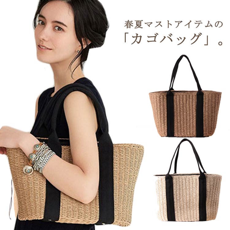 かごバッグ レディース トートバッグ a4 ストローバッグ 夏 リゾート バッグ 大きい トート バッグ ファスナー バッグ 大きめ