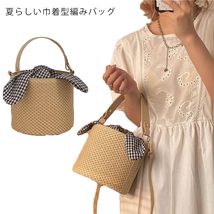 手提げバッグ ストローバッグ 2way ハンドバッグ バスケット ポシェット かごバッグ レディース ショルダーバッグ 巾着型 レース 手提げ 斜めがけ 肩掛け 夏