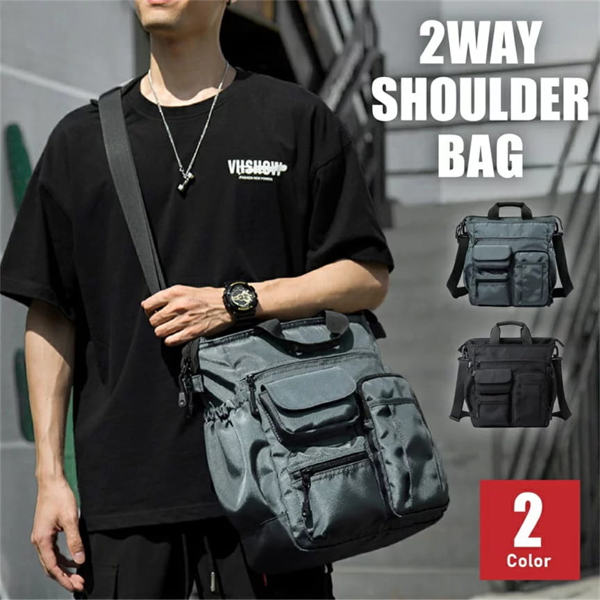 ハンドバッグ カジュアル 多機能 防水 撥水 大容量 ショルダー 大人 ビジネス 男 大学生 高校生 通学 肩掛け 黒 灰色 ショルダーバック 実用的
