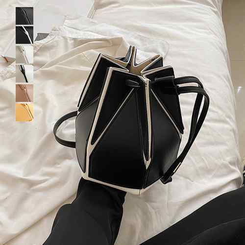 レザーバケツバック 六角形鞄2 斜め掛け 肩掛けバッグ お洒落ハンドバッグ きれいめデザインバッグ コンパクト 大人可愛い 韓国風 2ミニバッグ バイカラー カバン