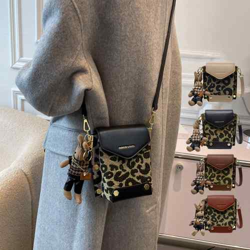 レオパード柄 斜めがけバッグ キーホルダー付き スマホポシェット おしゃれ かわいい 小さめ鞄 ミニバッグ ポシェット コンパクト 軽量鞄 ヒョウ柄 ミニ鞄 お財布バッグ 韓国