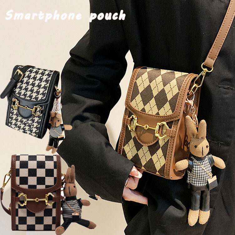 肩掛けスマホケース スマホポーチ レディース スマホショルダー お財布ショルダー お財布ポシェット おしゃれ かわいい ショルダー 肩掛け 携帯 バック 菱形 チェック柄 千鳥格