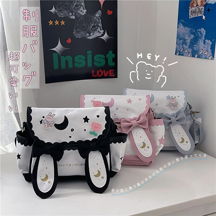 ロリータバッグカバン JKカバン 可愛い お出かけおしゃれ 韓国 アウトドア トレンド ショッピング ギフト プレゼント鞄スクールバッグ大容量 斜め掛け 軽量 オシャレ 人気 兎リボン