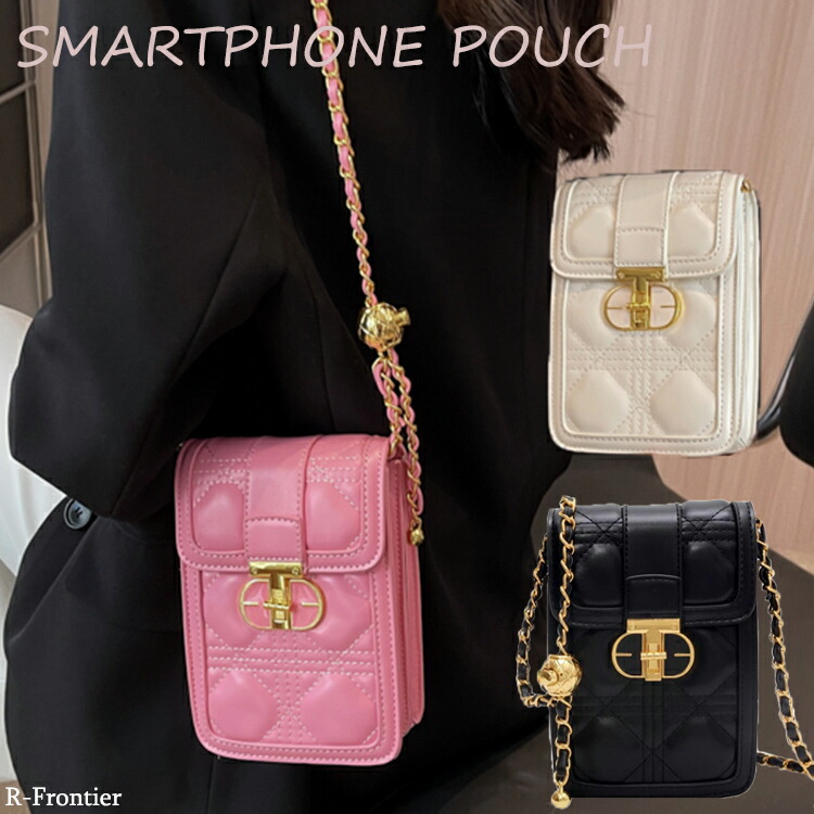 スマホポーチ パール バッグ レディース キラキラ 携帯バック チェック 可愛い チェーン 黒 白 グリーン 財布 斜め掛け