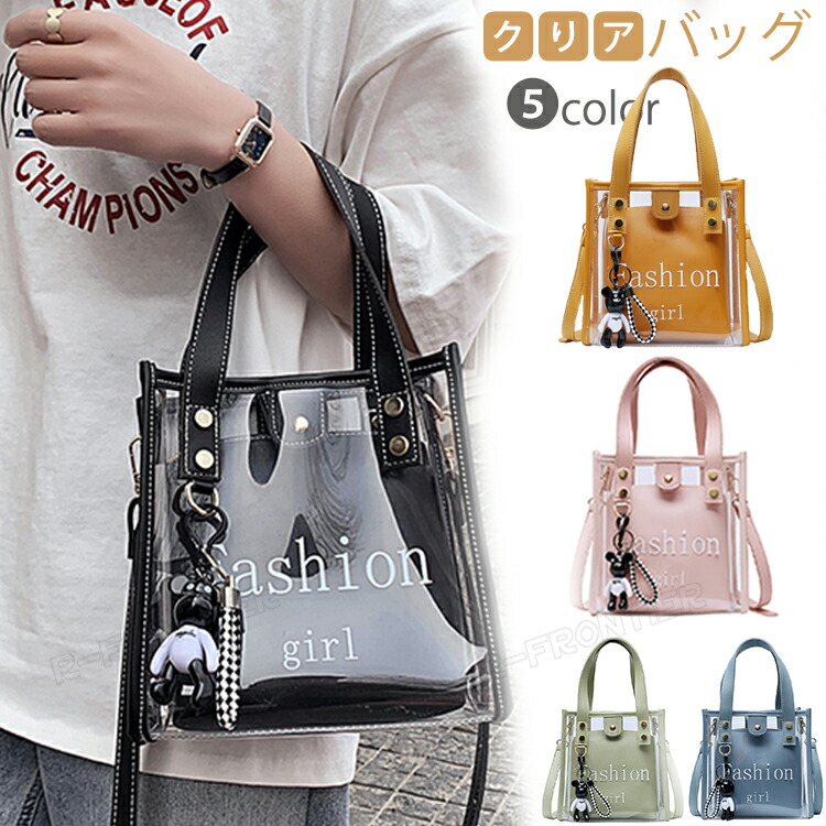 クリアバッグ レディース ハンドバッグ ショルダー トートバッグ 斜め掛け チェーン付き リボン可愛い エコバッグ
