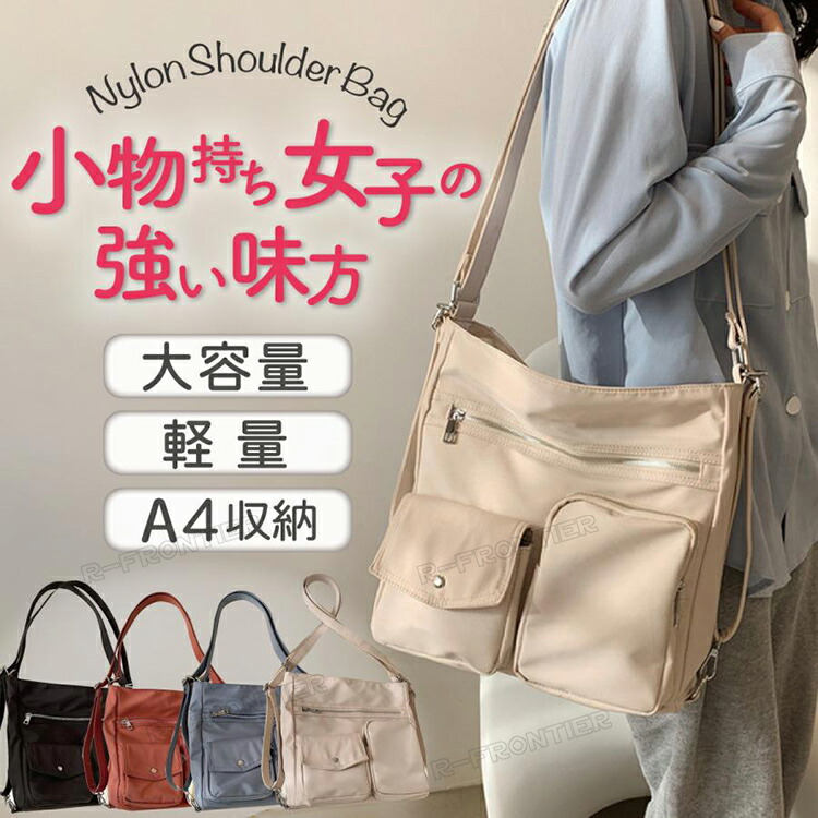 ナイロンショルダーバッグ 無地 大容量 レディース 4 2 軽量 リュック 鞄 かばん 通学 マザーズ ショルダーバッグ レディース 斜めがけ ナイロン きれいめ 大人 通勤 斜めがけバッグ
