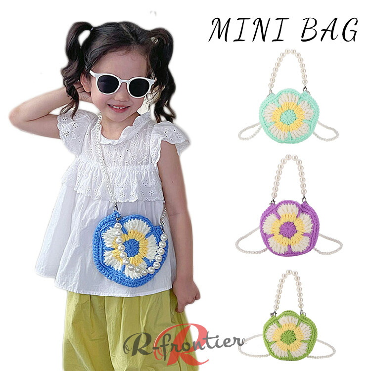 キッズ ショルダーバッグ 女の子 パール付き 可愛い おしゃれ ミニバッグ ピンク ブルー グリーン ホワイト かわいい カラフル 斜めがけバッグ お出かけ