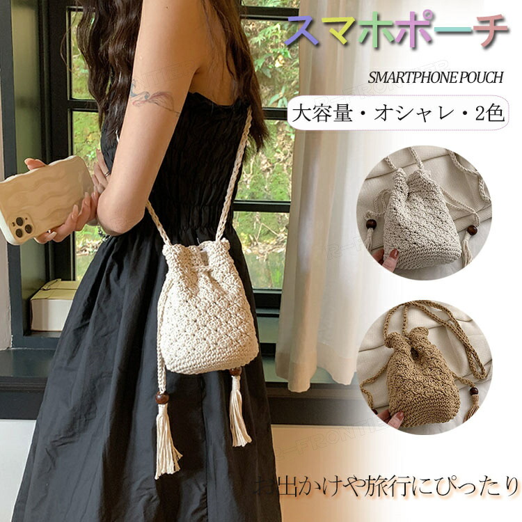 編みポーチ スマホショルダーバッグ 編みポーチ スマホショルダー レディース ミニバッグ おしゃれ かわいい ショルダー 肩掛け 携帯 バック