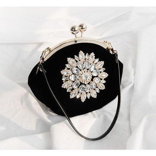 ビジューハンドバッグ黒ブラックバッグ鞄キラキラシルバーミニ小さい小さめおしゃれ可愛いパーティーフォーマル結婚式韓国レディースガールズ大人ベロア高見えがま口