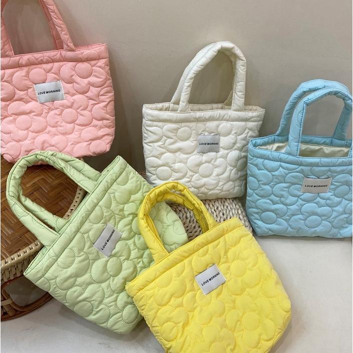 5色フラワーキルティングバッグ花柄ハンドバッグトートバッグミニ小さい小さめ韓国おしゃれ可愛い大容量深い深めマチピンク白ホワイト青ブルーグリーン緑イエローサブバッグお弁当入れレディース